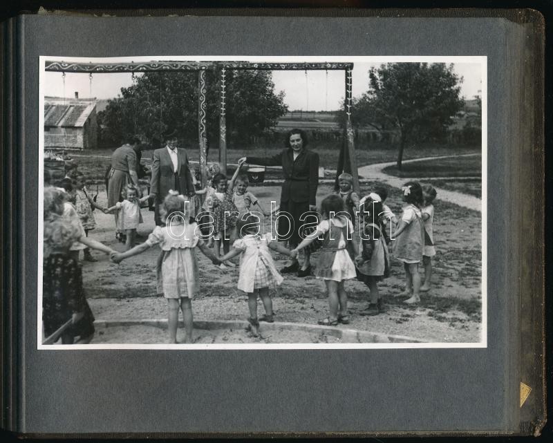 1948 Dinnyés Lajos (1901-1961) kisgazda politikus, miniszterelnök feleségének, Hegedűs Katalinnak és Rákosi Mátyás (1891-1971) kommunista politikus, későbbi miniszterelnök és az MDP főtitkárának a feleségének, Fenya Fjodorovna Kornyilovának a látogatása Herenden, benne a porcelángyárban készült fotókkal is, valamint a két "látogató" és a testőr békés piknikezésével, családtag által feliratozva, 24 db fotó, haránt-alakú, fűzött fotóalbumban, 12x18 cm és 11x18 cm között méretben