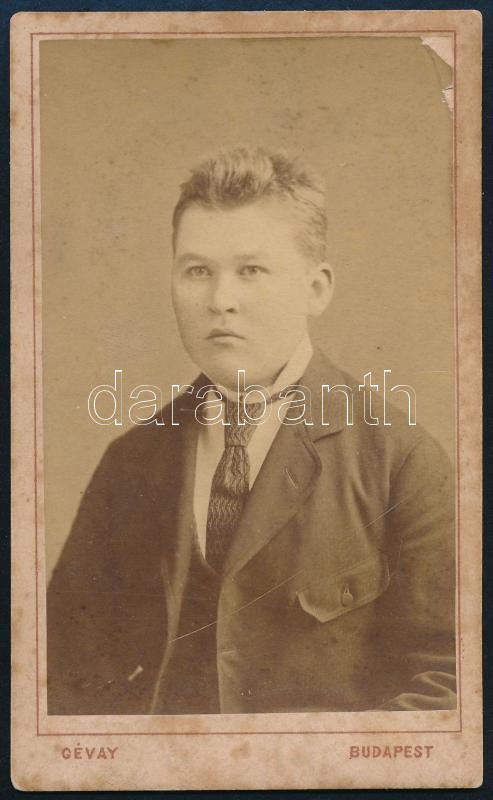 cca 1870-1880 id. Dinnyés Lajos (gyulafalvi Sáska Dinnyés Lajos földbirtokos, 1855-1930) dabasi földbirtokos gyerekkori portré fotója, M. Gévay budapesti műterméből, foltos, az egyik sarkán kis sérüléssel, 10x6 cm