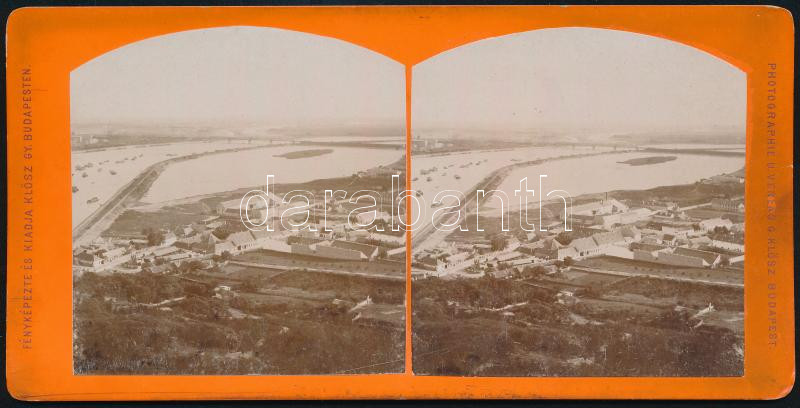 Leírás: cca 1875 Budapest, Buda, Lágymányosi-tó és környéke, sztereófotó, Klösz György felvétele, 8,5×17,5 cm