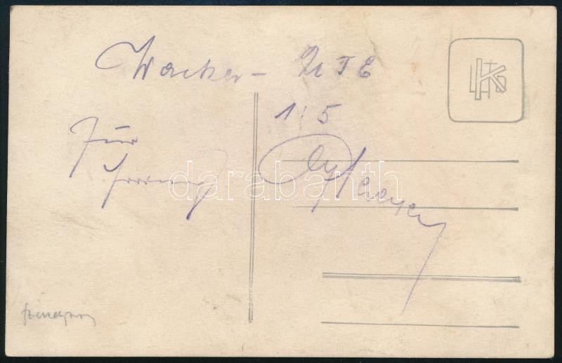 cca 1915 Az osztrák Wacker Wien focicsapat fotója, hátoldalt Wacker - UTE 1:5 felirattal, aláírással, sarkán törésnyom, 9×14 cm / Wacker Wien Austrian football team