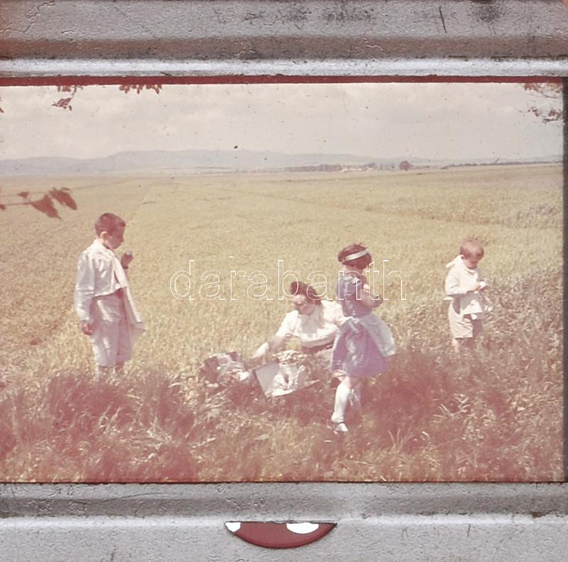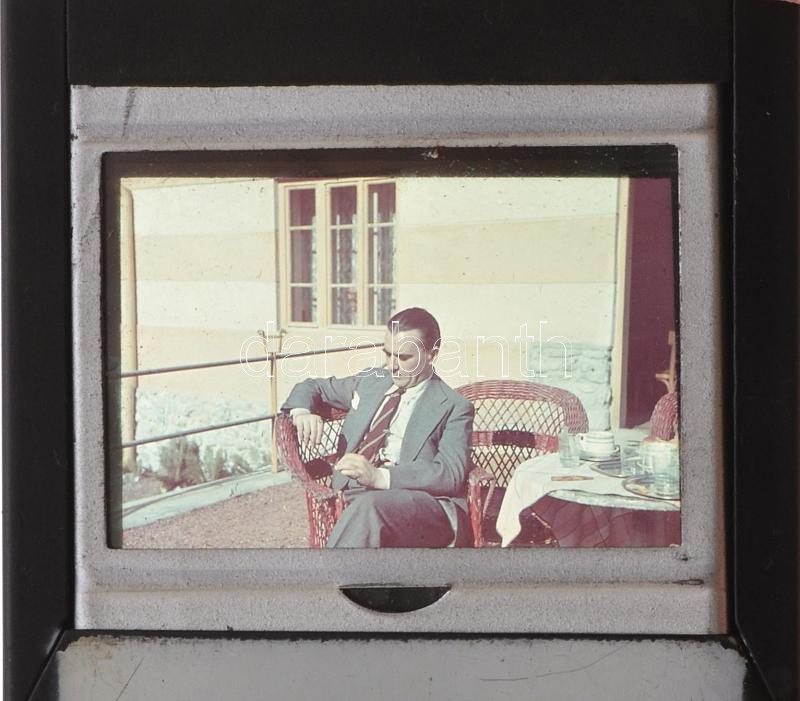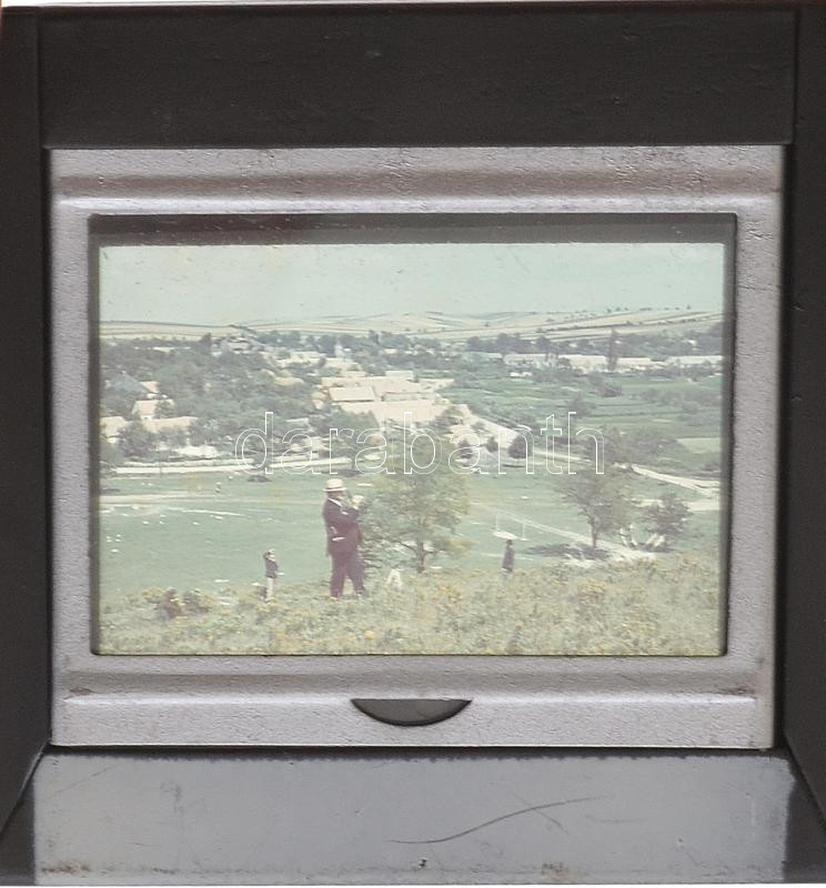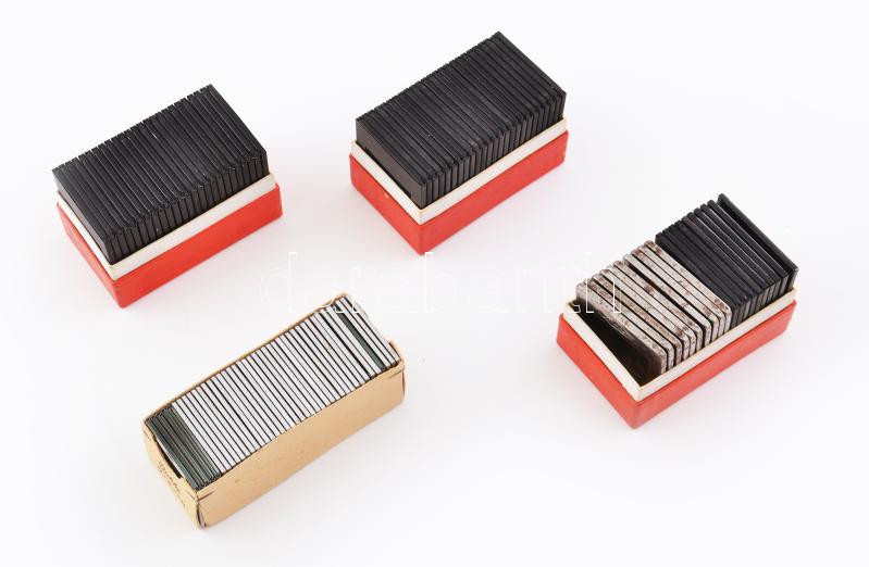 cca 1920-1940 A pilisi báró nyáregyházi Nyáry-család fotó dia hagyatéka, 4 dobozban, nagyrészt színesek, vegyes témákkal, 3x4 cm és 5x5 cm közötti méretben