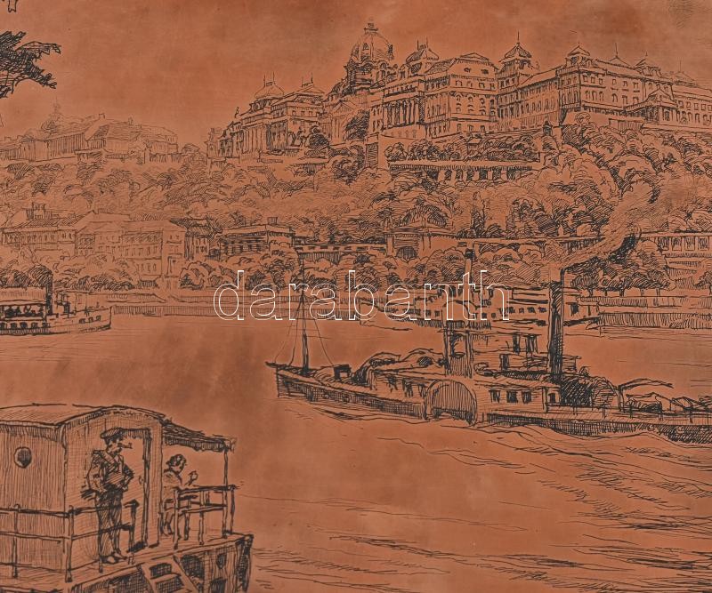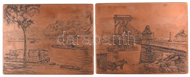 Leírás: Baranszky Emil (1877-1941): Lánchíd és a Budai vár. Réz nyomódúc. Szép állapotban. 23x30 cm