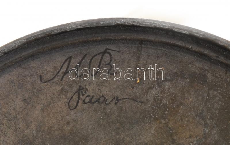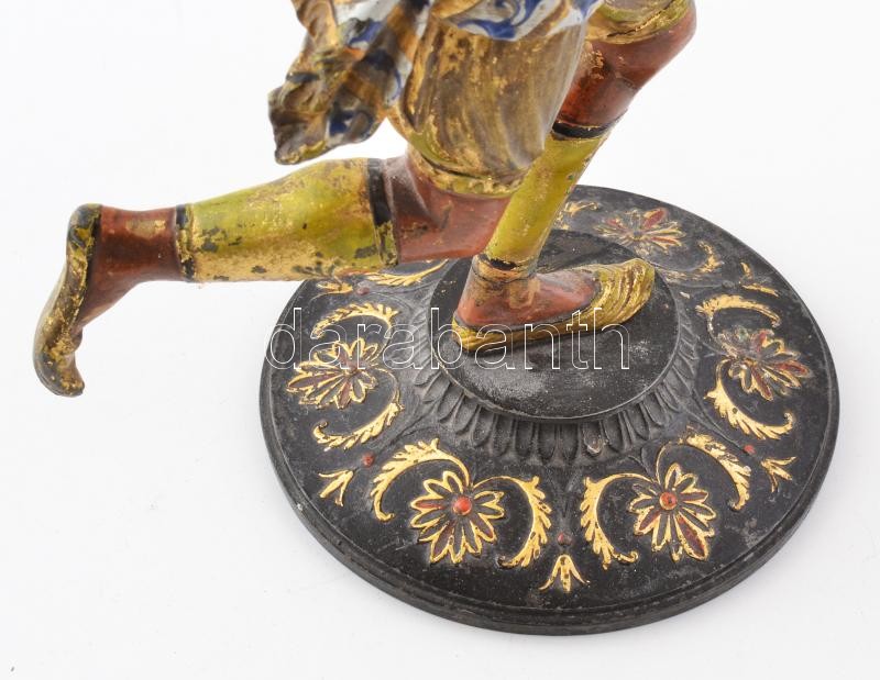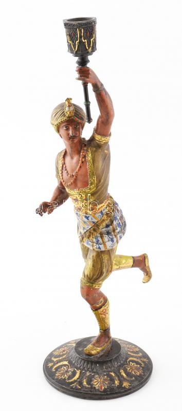 Szerecsen gyertyatartó fém szobor. Festett fém, XIX. sz. vége. Jelzett. Kopott / Moor. Candlestick-statue. 19th century, signed. Painted metal. Worn. 40 cm