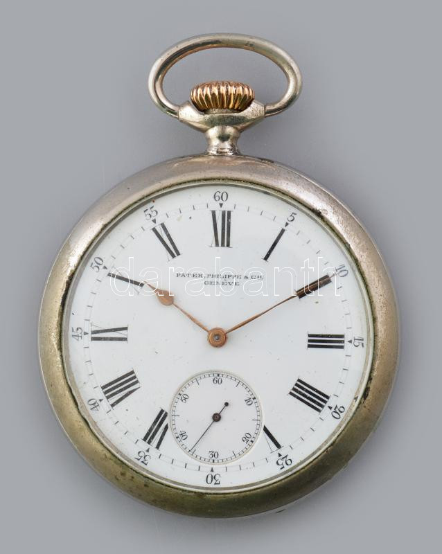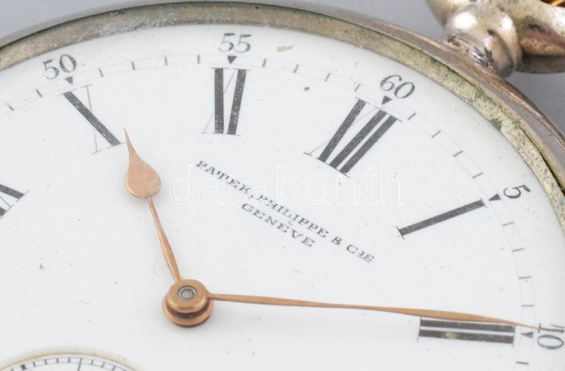Patek Philippe zsebóra cca 1910. Jelzett szerkezettel, Szerkezet szám 108468. Szép számlappal, fém tokkal. Működő, jó állapotban. d: 54 mm / Patek Philippe metal pocket watch