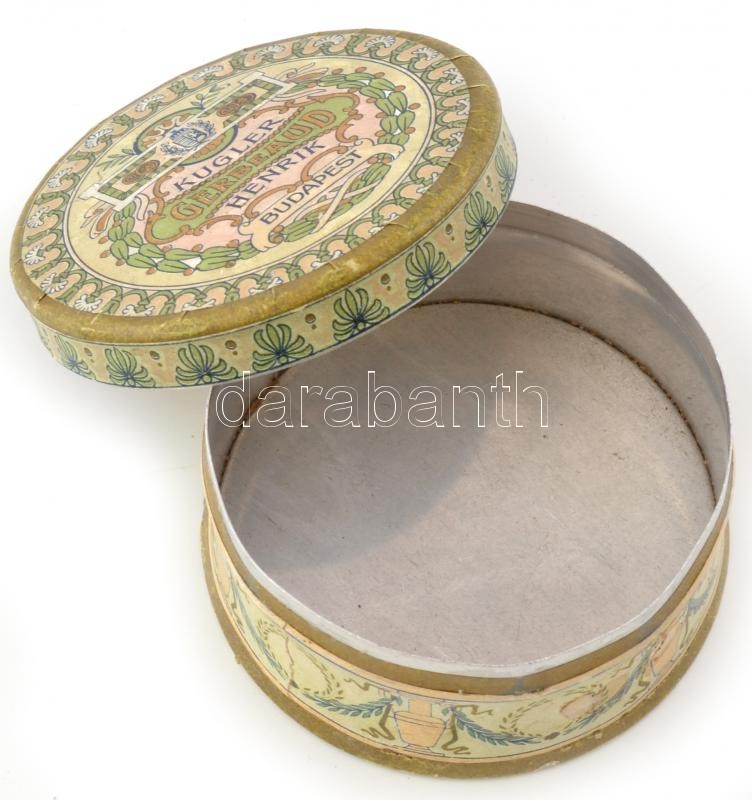 cca 1910 Kugler Henrik Gerbeaud bonbonos doboz, alumínium, papír borít... https://www.darabanth.com/hu/39-Nagyaukcio/39.1/Mutargy-szobor-papirregiseg/Reklam~16013/cca-1910-Kugler-Henrik-Gerbeaud-bonbonos-doboz-aluminium-papir-boritassal-szecesszios-szep~II2729431