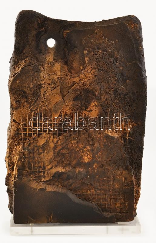 Paizs László (1935-2009): 56-os emlékmű terv I. Műgyanta. 53 × 32 cm. "A budapesti Iparművészeti Főiskolán tanult. Z. Gács György, Rákosy Zoltán, Szentiványi Lajos voltak a mesterei. Allegorikus alakokat (sgraffito) formázott az Odry Színpad számára 1958-ban. A korszakban divatos murális munkák kivitelezésében vett részt már főiskolás éveiben is mesterei és Fónyi Géza, Konecsni György, Domanovszky Endre mellett. Végzős korában, 1959-ben éppen egy Mozaik című murális munkát készített diplomamunkaként a korabeli Kertészeti Egyetem részére. Az 1960-as évek elején a korban szokásos hagyományos realista felfogású olajképeket festett, de pár év múltán Olaszországban az 1964-es velencei biennálé amerikai pavilonjában megismerkedett a pop art irányzattal, s ennek jegyében alkotott, ezen textil, fém és bőranyagú varrottas képeit eleinte nem engedte tárlatra a Fiatal Képzőművészek Stúdiója Egyesületének (FKSE) zsűrije. 1961 óta volt kiállító művész, elsősorban hazai, de számos nyugat-európai országban (NSZK, Olaszország, Dánia, Franciaország) rendezett tárlaton is megmérette magát. Az 1970-es évektől már kiállíthatta itthon is pop art-os objektjeit, egyik legnevezetesebb A trónörököspár politikai gyilkosság áldozata lett: 1914 (1970), mely alkotás plexiüvegből, újságpapírból és szarvasbogarakból készült.[3] Később főként átlátszó plexitömbökből dolgozott, s a legkülönbözőbb, a témát találóan kifejező alapanyagokat használt hozzá, például ruhacsipeszt A szegedi egyetemisták emlékére (1956. október 26.) című képhez vagy például szemüveget Nagy Imre arcmásának felidézéséhez. Az 1980-as évektől köztéri színezett, konstruktív, nagy méretű poliészter szobrai igen népszerűek voltak, számos hazai és külföldi megrendelést kapott, le is szállította azokat. Organikus plasztikájú bronzszobrokat is mintázott, köztük a Thália Színház épületszobra, életnagyságú allegorikus női figura (1997). Színes poliészter táblaképeket is alkotott roncsolt felülettel, mintha régészeti leletek vagy atomtámadás utáni szurrogátumok lennének. A mindig megújulni képes művész az 1990-es években korábbi roncsolt táblaképeire emlékeztető nagy méretű egyedi grafikákat készített, melyeken az emberi alakok már kizárólag nonfiguratívak. "