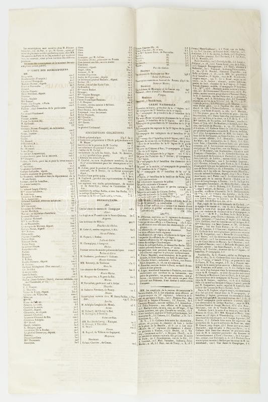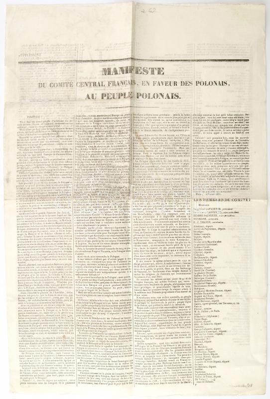 1831 Manifeste du Conité Central Francais en faveur des Polonais - Manifesztum a lengyel felkelőknek a francia nemzetgyűléstől / Manifest for the Polish insurgents from the French Central Comitee, Lafayette and al. 33x48 cm