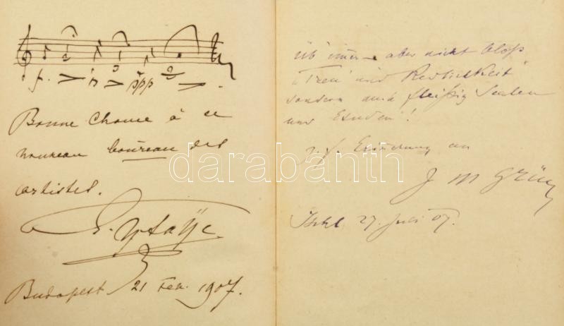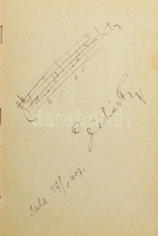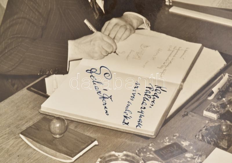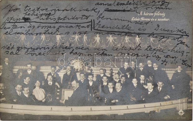 Lehár Ferenc, Pálházy Gyula fényképész-operatőrnek dedikált fotója, 18×24 cm + Lehár Ferenc képeslapok (3 db) + 2 db kotta és egy emlékkönyv, melynek elején lévő aláírások között Leháré is szerepel