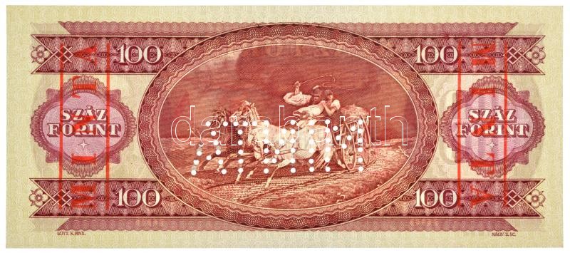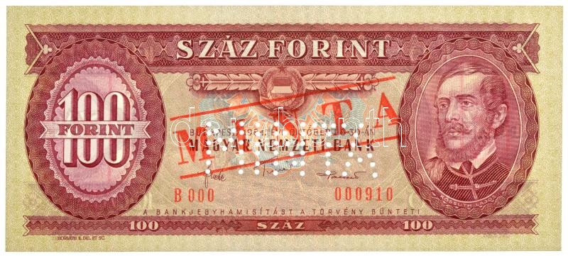 1984. 100Ft piros "MINTA" felülnyomással és perforációval, "B 000 - 000910" sorszámmal T:I / Hungary 1984. 100 Forint with "MINTA" (SPECIMEN) overprint and perforation and with "B 000 - 000910" serial number C:UNC
