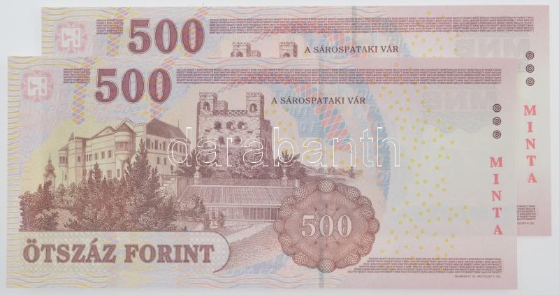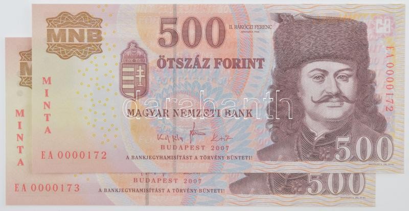 2007. 500Ft (2x) sorszámkövetők, piros "MINTA" felülbélyegzéssel, alacsony "EA 0000172 - EA 0000173" sorszámmal T:I / Hungary 2007. 500 Forint (2x) consecutive serials, with red "MINTA (SPECIMEN)" overprint and low "EA 0000172 - EA 0000173" serial number C:UNC
