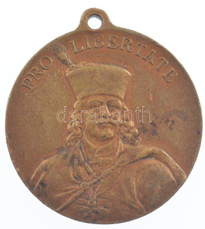 Leírás: 1903. "Pro Libertate / A kassai Rákóczi-kiállítás emlékére" kétoldalas bronz emlékérem füllel (30mm) T:2,2- patina, ph, karc /