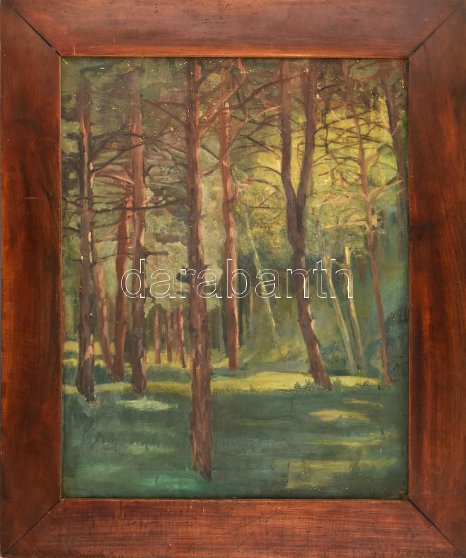 Leírás: Jelzés nélkül: Erdőrészlet.Olaj, vászon, sérült. Fa keretben. 68x54 cm