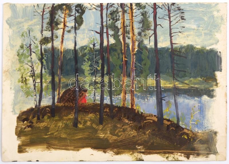 Leírás: Jelzés nélkül: Vízparti erdő. Olaj, papír. 30x42,5 cm