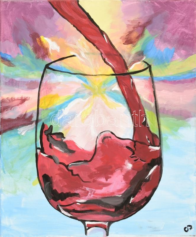 Leírás: Olvashatatlan jelzéssel: Egy pohár vörösbor. Olaj, vászon. 50x40 cm