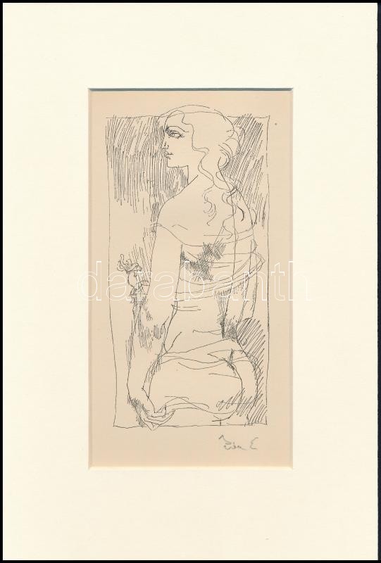 Leírás: Szász Endre (1926-2003): Női alak. Ofszet, papír, utólagos jelzéssel, paszpartuban, 18×10 cm
