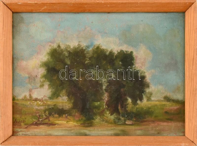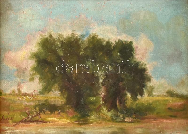 Leírás: Szécsi András (1934-1991): Táj. Olaj, karton, jelzett, fa keretben, 25×32,5 cm