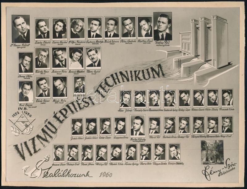 Leírás: 1956-1959 2 db tablófotó (XIII. ker. Jász utcai Általános Iskola, békéscsabai Vízműépítési Technikum), 16x21 cm, 18x24 cm