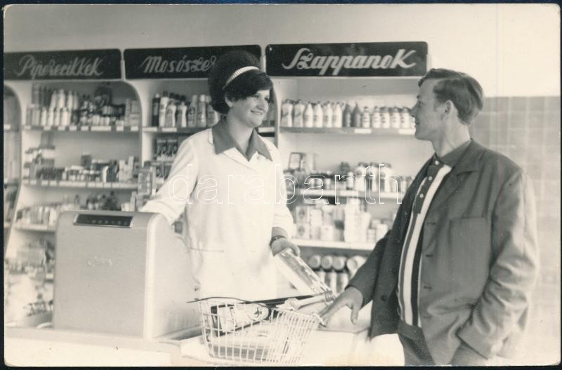 Drogéria belső tere, fotólap, 14×9 cm https://www.darabanth.com/hu/390-Gyorsarveres/390.0/Fotomuveszet/Foto~500022/Drogeria-belso-tere-fotolap-14C3979-cm~II2352303