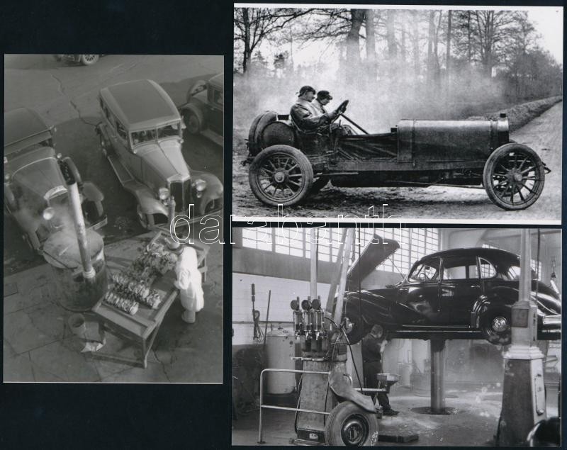 Leírás: Régi automobilok, eltérő helyen és különböző időpontokban készült felvételek, 7 db mai nagyítás, 10x15 cm