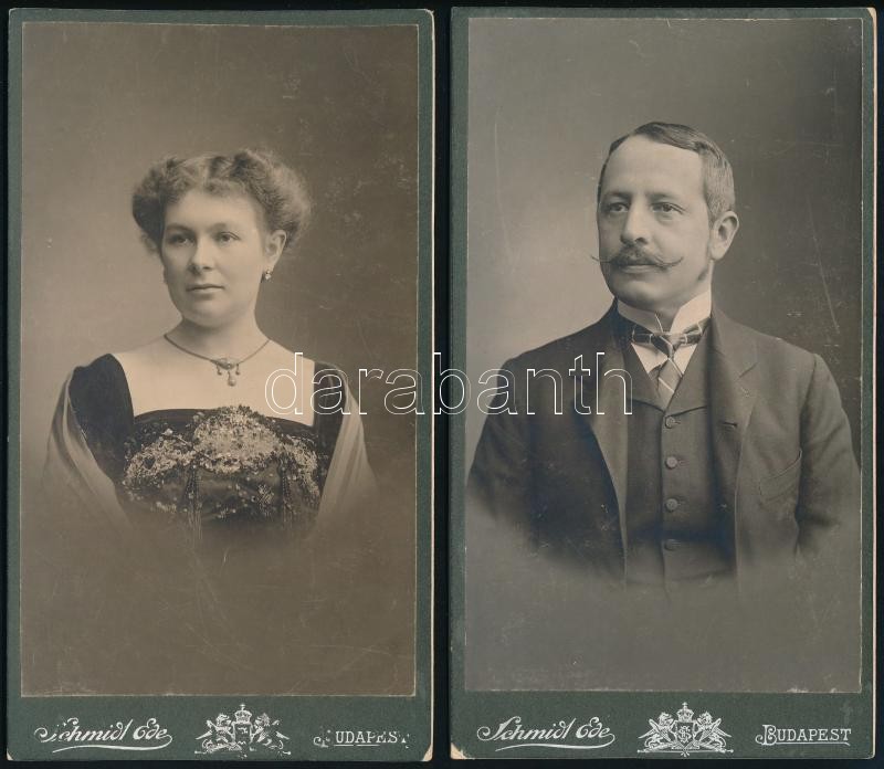 cca 1900 Ajtay K. Barna és felsége Ajtay K. Barnáné Bogyay Lenke és lányuk fotója, 3 db keményhátú fotó, Schmidt Ede budapesti műterméből, részben festett, kissé kopott kartonokkal, 20x11 cm
