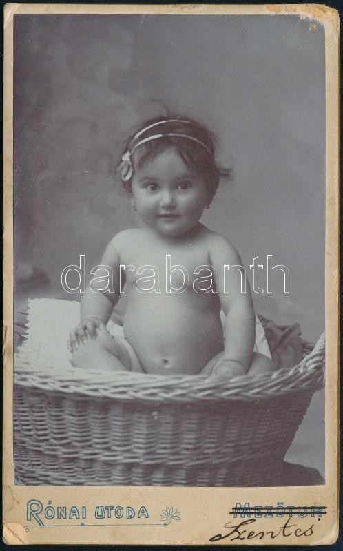 Leírás: cca 1910 Szentes, ,,Inkább engem vigyél fel a padlásra", Rónai utóda fényképészeti műtermében készült, keményhátú vintage fotó, 10,3x6,3 cm