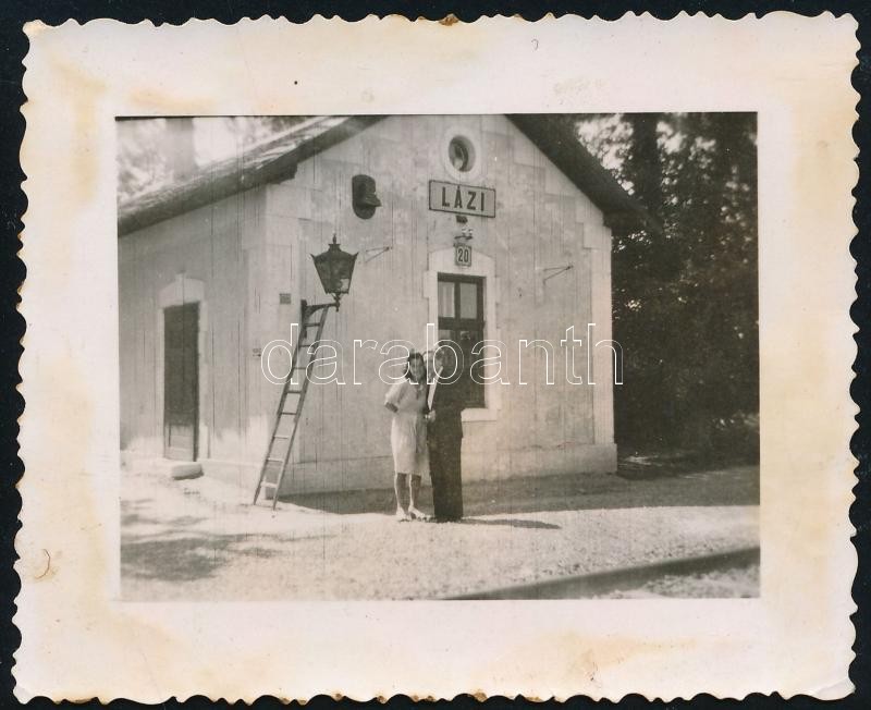 Leírás: cca 1940 Lázi vasútállomás, fotó, 6x7,5 cm