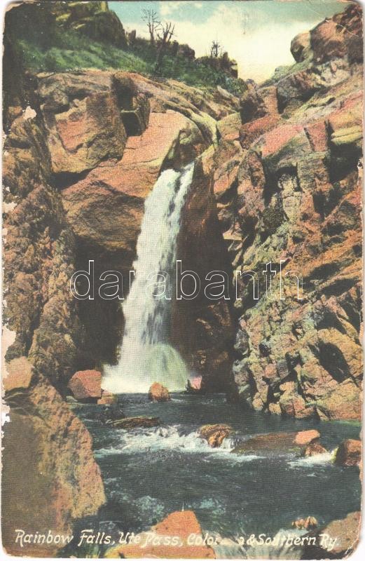 1909 Colorado and Southern Ry, rainbow falls, Ute Pass (wet damage) https://www.darabanth.com/hu/390-Gyorsarveres/390.0/Kepeslapok/Amerikai-Egyesult-Allamok~1500016/1909-Colorado-and-Southern-Ry-rainbow-falls-Ute-Pass-wet-damage~II2348924