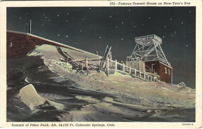 Colorado Springs (Colorado), summit of Pikes Peak, famoun summit house... https://www.darabanth.com/hu/390-Gyorsarveres/390.0/Kepeslapok/Amerikai-Egyesult-Allamok~1500016/Colorado-Springs-Colorado-summit-of-Pikes-Peak-famoun-summit-house-on-New-Years-Eve-wet-damage~II2349224