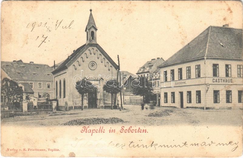 Leírás: 1901 Sobedruhy, Soborten (Teplice, Teplitz); Kapelle, Gasthaus zur Sonne / chapel, inn, hotel (fl)