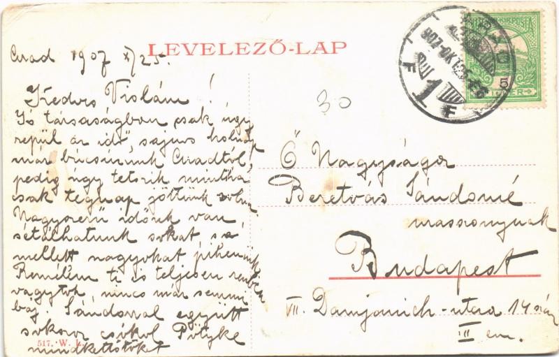 Leírás: 1907 Arad, Thököly tér, Román templom átépítés alatt, Schumann M. üzlete. W. L. 517. / square, Romanian church in reconstruction, shop (EK)