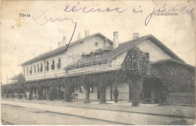 1912 Tövis, Teius; vasútállomás / railway station (fl) https://www.darabanth.com/hu/390-Gyorsarveres/390.0/Kepeslapok/Erdely~1500005/1912-Tovis-Teius-vasutallomas-railway-station-fl~II2352087