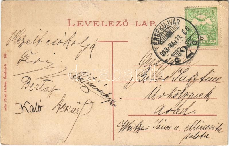 Leírás: Érsekújvár, Nové Zamky; látkép, piac, Arany Oroszlán szálloda, kiadja Adler József / panorama view, market, hotel (kopott sarkak / worn corners)