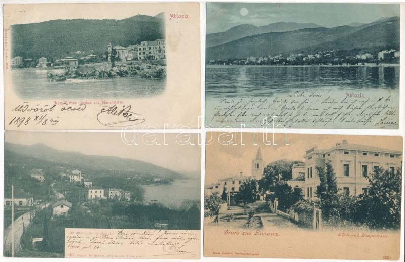 Leírás: Lovran, Lovrana; 4 db régi hosszúcímzéses képeslap / 4 pre-1905 postcards