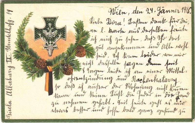 1916 Offizielle Karte für Rotes Kreuz, Kriegsfürsorgeamt Kriegshilfsbüro Nr. 320. / WWI Austro-Hungarian K.u.K. military art postcard, charity fund (EK)