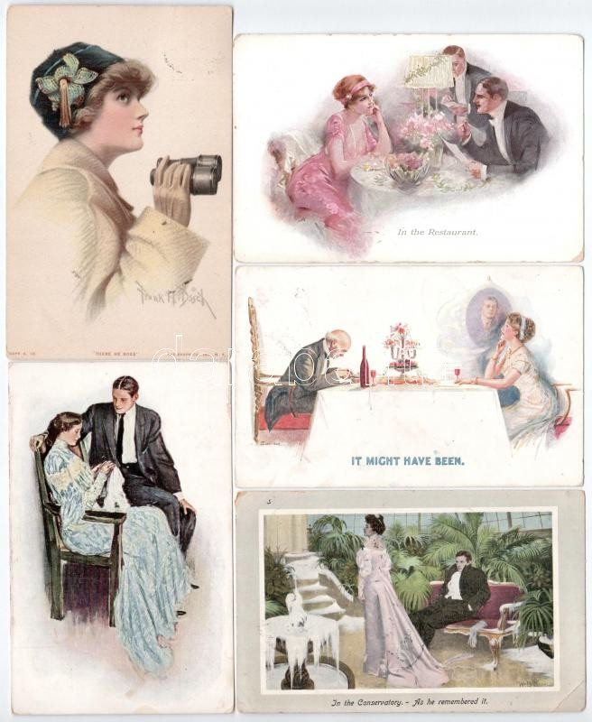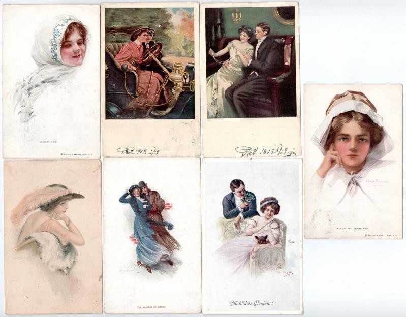 Leírás: 12 db RÉGI művész motívum képeslap: amerikai hölgyek / 12 pre-1945 art motive postcards: American ladies