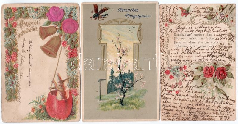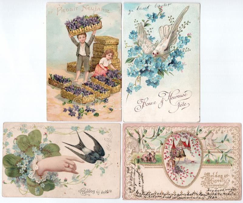 15 db RÉGI motívum képeslap vegyes minőségben: dombornyomott és litho üdvözlő / 15 pre-1945 motive postcards in mixed quality: embossed and litho greetings
