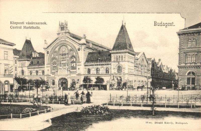 Leírás: Budapest IX. Központi Vásárcsarnok, gyógyszertár, Nádor szálló és kávéház