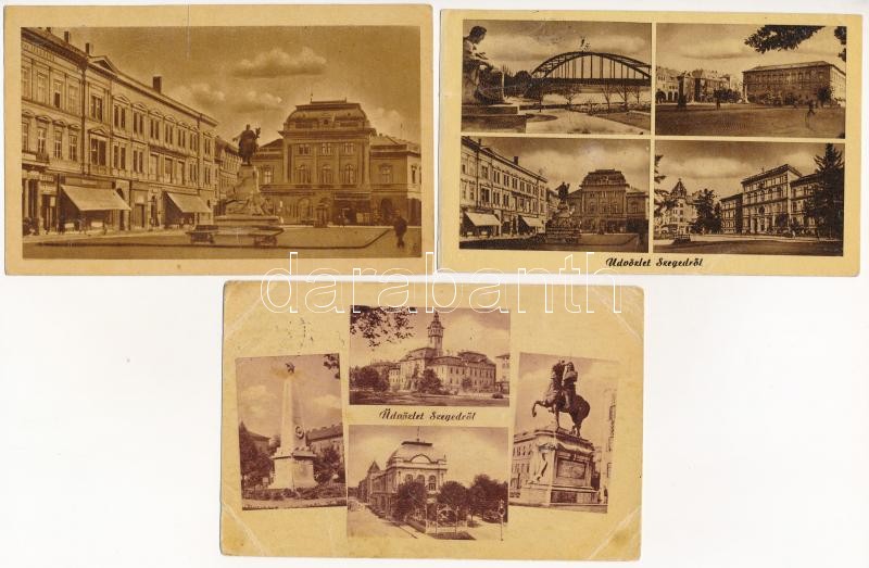 27 db MODERN magyar 60 filléres város képeslap (Képzőművészeti Alap Kiadóvállalat): Csongrád megye / 27 modern Hungarian town-view postcards from the 50's: Csongrád county