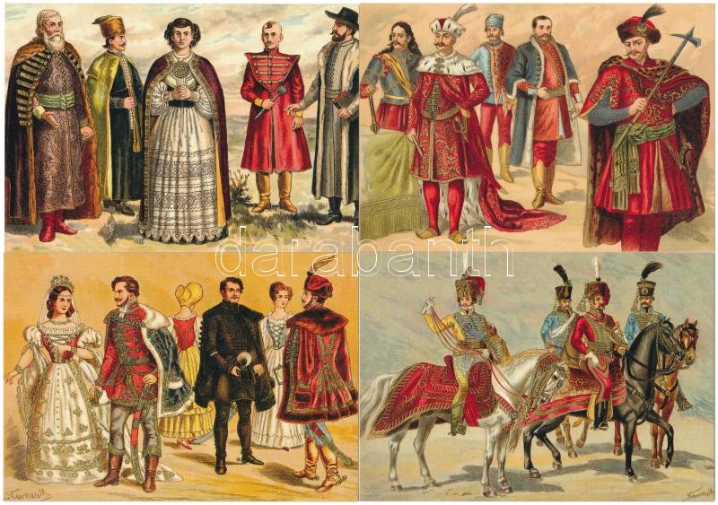 Leírás: 30 db MODERN magyar reprint motívum képeslap: Magyar viseletek, Nemes Mihály szignó / 30 modern Hungarian reprint motive postcards: costumes, folklore