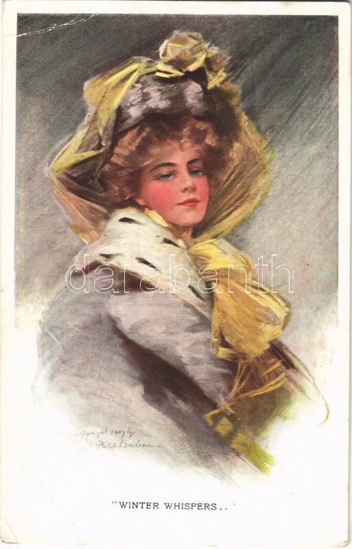 Leírás: "Winter Whispers" Lady art postcard. Reinthal & Newman s: Philip Boileau (EB)