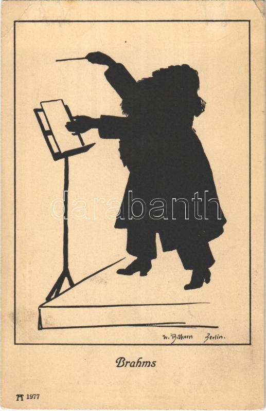 Leírás: Johannes Brahms. F. A. Ackermann's Kunstverlag Serie 168: 6 Tonkünstler-Silhouetten II. s: W. Bithorn (EK)
