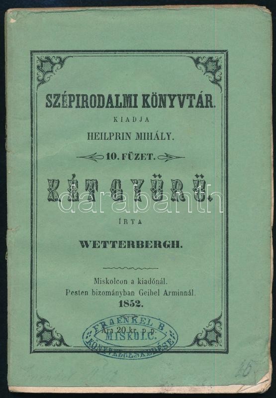 [Wetterbergh, Carl Anton (1804-1889] Wetterbergh: Két gyűrű. Ford.: Szilágyi Gyula. Szépirodalmi Könyvtár 10. füzet. Kiadja Heilprin Mihály. Miskolc, 1852, Deutsch Dávid, 101+VI p. Kiadói papírkötés.