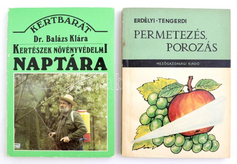 Dr. Balázs Klára: Kertészek növényvédelmi naptára. Bp., 1990, Mezőgazdasági. Kiadói papír kötésben. + Dr. Erdélyi Tibor - Tengerdi János: Permetezés, porozás a gyümölcsösben, szőlőben, szántóföldön és konyhakertben. Negyedik, átdolgozott és bővített kiadás. Bp., 1962, Mezőgazdasági. Kiadói papír kötésben.