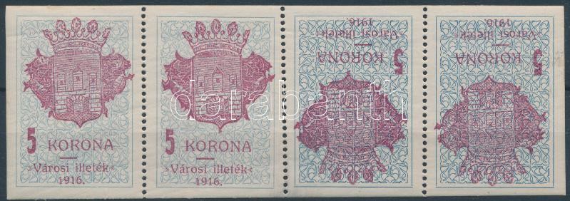 Leírás: 1916 Székesfehérvár városi illetékbélyeg négyescsík (gumihiba / gum distubance)
