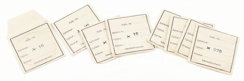 Leírás: 4 pár csiszolatlan szemüveglencse (0,75; 1; 1,5; 2 dioptria), eredeti papír tasakjában
