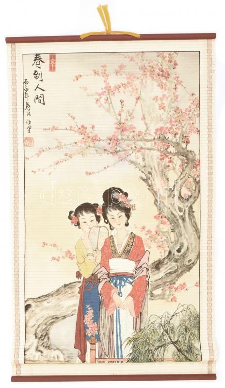 Leírás: Kínai kartonra nyomott fali kép, Kézzel festett, feltekerhető kép 33x51 cm