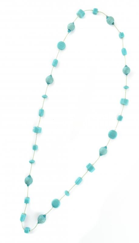 Leírás: Üveg nyaklánc, türkiz színű, h: 55 cm