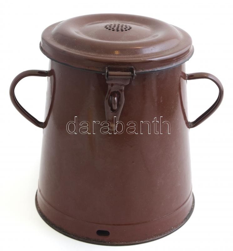 Leírás: Zománcozott fém zsíros bödön, kopásokkal, m: 24,5 cm