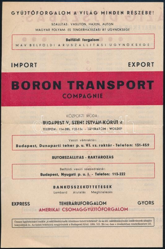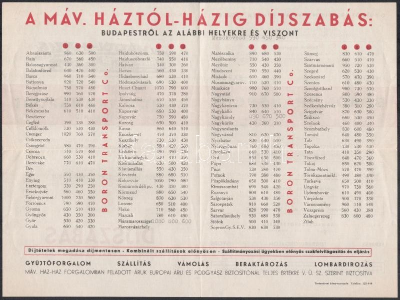 Leírás: Boron Trasport Compagnie Bp. V. díjszabás