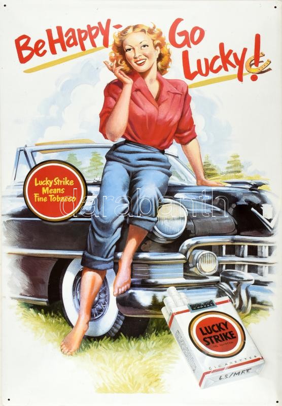 Leírás: Lucky Strike modern fém reklám tábla, apró kopásnyomokkal, 59x39 cm